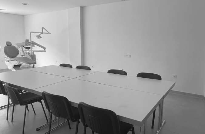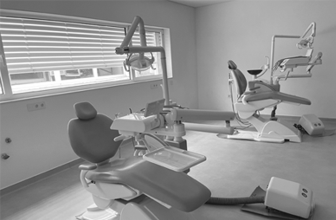 com todo o equipamento de suporte necessário. Dispõe de bancadas de prótese,5 equipamentos dentários, sendo um deles cirúrgico.